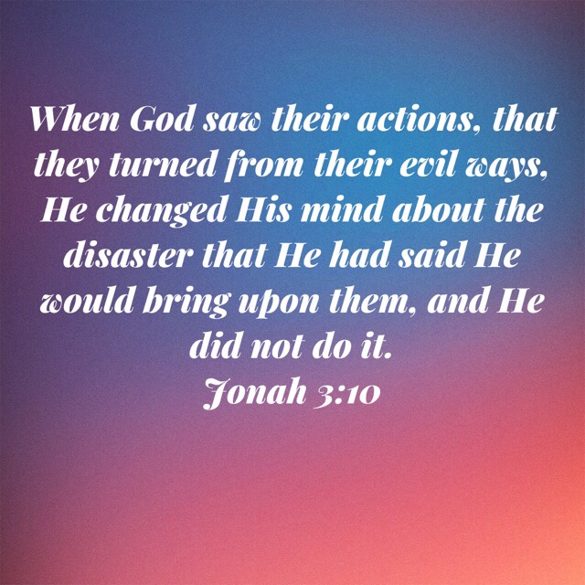 I have been reading the story of Jonah during my devotions and how reluctant he was to go to the city of Nineveh and declare that they would be destroyed. One of the reasons for his reluctance is that he knew the character of God and knew that He could change His minds about this destruction if the people repented. Jonah, being human just like we are, did not want to be embarrassed by the Lord changing His mind. It seemed that he was willing to declare that the city would be destroyed, but he was not going to be happy if they were not wiped out. However, one thing Jonah had to learn, just as we do, is that God is sovereign and does what is right, regardless of how we feel about His final judgment.