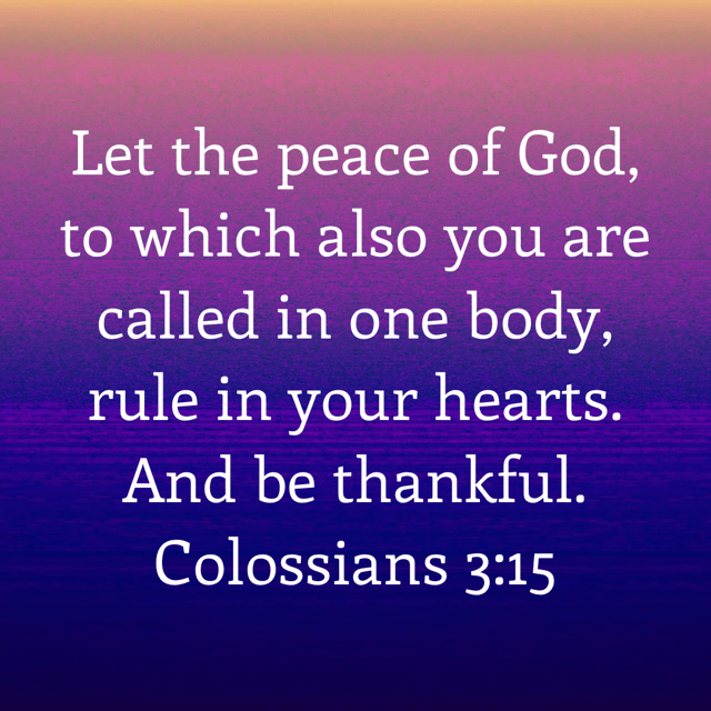 This has been a hard week, especially on Wednesday. That was my husband’s birthday so we had mostly planned a relaxing day. He was going to continue to do some repairs around the house and had also decided to finish our Thanksgiving meal shopping. He returned from his errands to find out that his brother had fallen and been admitted to the hospital. And later that night, our daughter in law had an episode with heart palpitations and was in the ER for a while. We subsequently found out that the latter was a panic attack, but it was no less scary and prayer producing. My brother in law in still in the hospital and has been diagnosed with COPD. He is on oxygen now and is breathing better. My husband is frantic to be able to talk to him, but he doesn’t answer his room phone, so we can’t do much about that. So, in the midst of all of this strife and stress, we have attempted to continue to be peaceful. We know that God is in charge and I am thankful that that is so. God is in control! He knows what is happening and He is in charge. That thought has allowed us to rest at night and to wake up the next morning with an outlook of positivity. I am thankful for being a Christian who knows the power of prayer and the power of almighty God. Even when things keep going wrong, God knows and watches over all of us. We can’t talk to Richard, my husband’s brother, but God can. We will see our daughter in law and family for Thanksgiving, so we can check on her then. Meanwhile, God’s peace continues to rule. How about you? Are you having a tough week? Be thankful that God’s peace is there for you! Blessings, my friends!