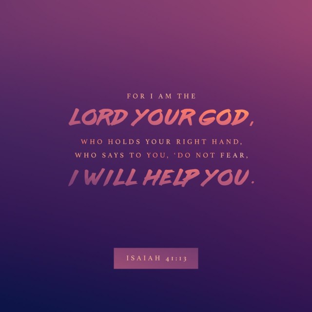Isn’t it wonderful to know that the Lord cares enough about us to put into the Scriptures multiple times that we should not fear because He is right there to help us? Praise His Name! He is as close as our next breath and He wants to help us if we will only call upon Him. Blessings for a wonderful day, without fear and with the help of the Lord!