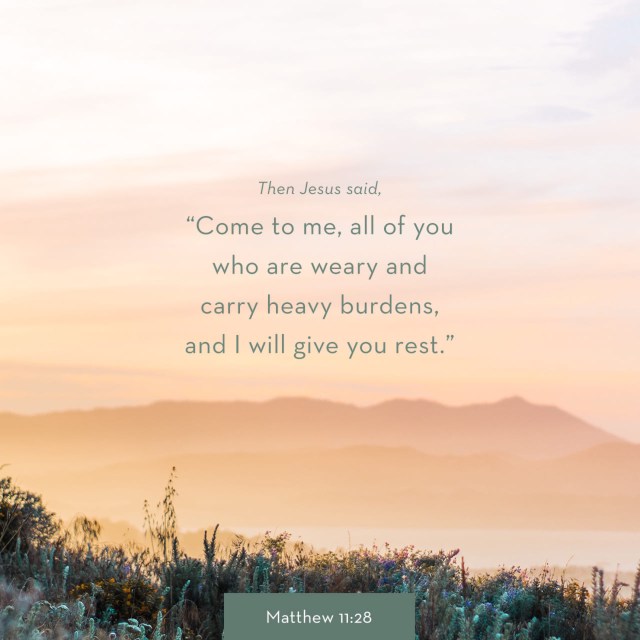 We were never meant to carry the heavy burdens that life seems to heap on us daily. Jesus wants us to daily give Him our burdens and then to just rest. I confess that in this season of having a democratic socialist elected as President of our nation, the burden has been heavy. I have a whole page of “what ifs,” a list of my low expectations for this new President. Nevertheless, as someone once told me, “Nothing is going to happen today that God and I cannot handle together.” So, each day, I lay my burdens (worries) at the feet of the Lord and then go about my day, secure in the knowledge that He is with me. Thus, I am learning to feel the peace of God all day long. When I go to the physical therapist and he tells me that I will have to wear my stability boot at least a couple of more weeks, I feel peace. When I get home and the gutter is falling off the house, I point it out to my husband who says that he knows but he has to drill new holes, My first thoughts are that, like the new steps that we need, it will just not get done. But when I pause, God’s peace comes to me and I just let the whole thing rest with Him. You see, men break promises all the time. But God doesn’t. And when He promises rest, then we can and will receive it if we truly give Him the burdens. I pray that each of you will feel God’s presence today and know His rest, the rest that comes from trusting Him to take care of the big things and the small things in your life since He cares about all of the little details. Bless you, my friends, with a good day, a good weekend and a close relationship with the One who makes all things possible, even His rest always.