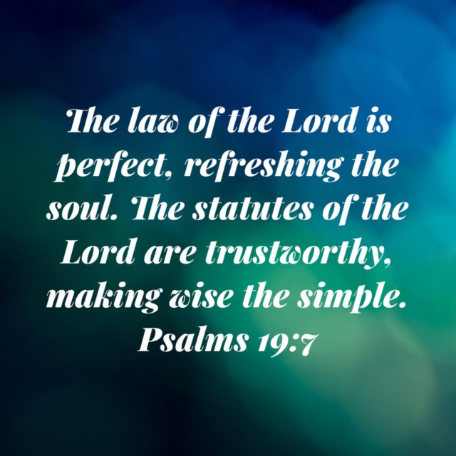 But then, I read this Scripture this morning and it calmed me. God’s law is always perfect. It’s always timely and meets the needs of all individuals in all situations. His statutes are trustworthy. We can trust that what God says is for our good, always. Finally, it is in studying God’s law that we become wise. Even the wisest men on earth cannot hold a candle to our God with His infinite wisdom and He shares His wisdom and love for us in His law.