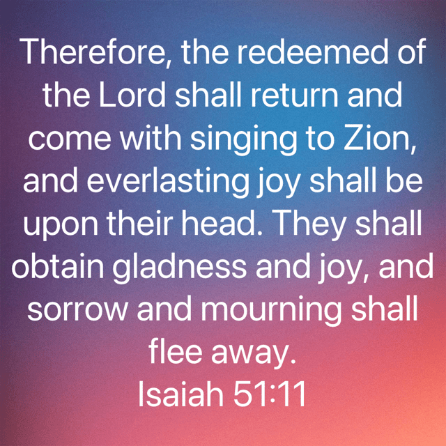 This is a song that I used to sing in church many years ago, one that still gives me great pleasure as I focus on the coming Day of the Lord, when all of the Redeemed will gather together. There will be only joy, no sorrow or mourning. This particularly touched me today as a fellow co-worker from my school passed away Friday from Covid. He had been vaccinated, so there are a lot of questions in my mind about how this could happen. He was only in his fifties and leaves behind a loving wife and five children. I hope to see him again someday when all of us together go to Zion, singing with gladness because Christ has redeemed us and for all eternity there will be no more sorrow.