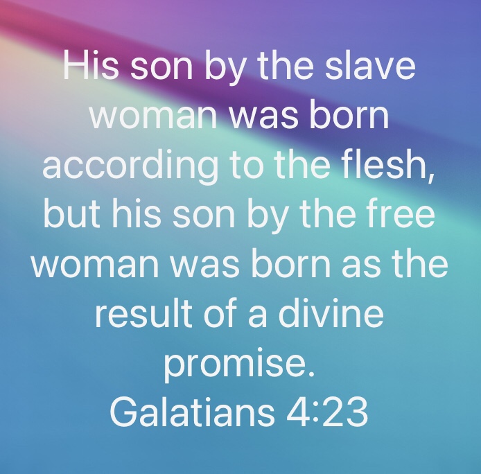“His” refers to Abraham and Paul is addressing a dispute about whether Christians must live under the Mosaic Law and be circumcised. His argument is centered around the mother of each of Abraham’s children. Isaac was a child of promise, the one who was led away to be sacrificed but for whom God provided a ram in his place. He was the promised child that Sarah and Abraham waited for, the one Sarah laughed about because she overheard the prophecy that she would have a child in her old age. God brought His will to pass and gave her Isaac. Ismael, however, was the son of a slave woman named Hagar. Impatient to have a child, Sarah gave Hagar to Abraham and urged him to have a child with her. She was a child who came from the fleshly desire to have a child right away instead of waiting for God’s promise.