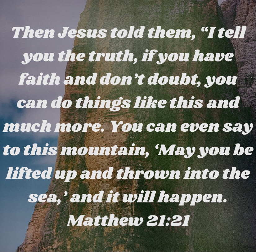 I haven’t moved any physical mountains lately, but I have seen mountains in my life fall. They are the mountains that keep me wondering what life is all about and why all the pain and suffering and all of the medical tests with no answers. They are the mountains that help me to know that God is alive and working in my life because He is actively involved in all the circumstances. He didn’t put the mountains in my life, but He will help me move them. Faith moves mountains…Jesus said it and I believe it!