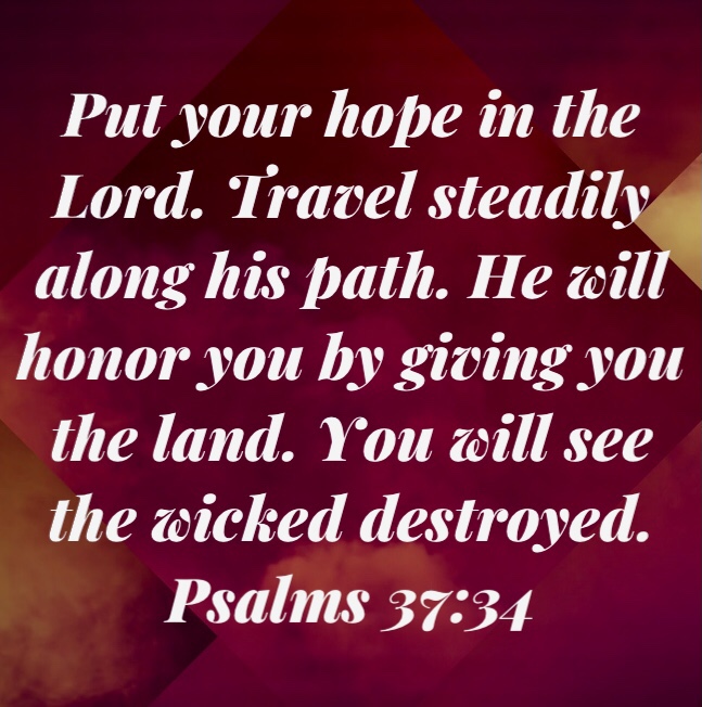 If we are traveling the road of life, which all of us are, we will encounter sin and evil. Nevertheless, God’s Word tells us to stay on the path to life and He will honor us. One day, the wicked will be totally destroyed. That is our hope and our assurance. Not that we want to see the wicked destroyed, of course, What we really want is for them to repent and come to God. But God promises that one day we will not have to endure their wickedness, their plots and schemes against God and His people will be gone forever.