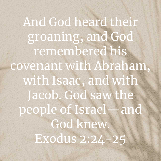 One would anticipate that their sin would prompt God to abandon his people forever. Yet, time and time again, an avalanche of God’s grace meets the faithlessness of the people. In fact, the text records God’s pity on the people and his attentiveness to their cries. Previously, Moses recounted how the people of God groaned because of their slavery and cried out to the Lord (Ex 2:23 – 25). These cries for deliverance were met by responses from the Lord. He heard their cries. He remembered the promises he had made in his covenant with them. He saw their need, and he knew their pain. This is the nature of the faithfulness of God — he hears, remembers, sees and knows.