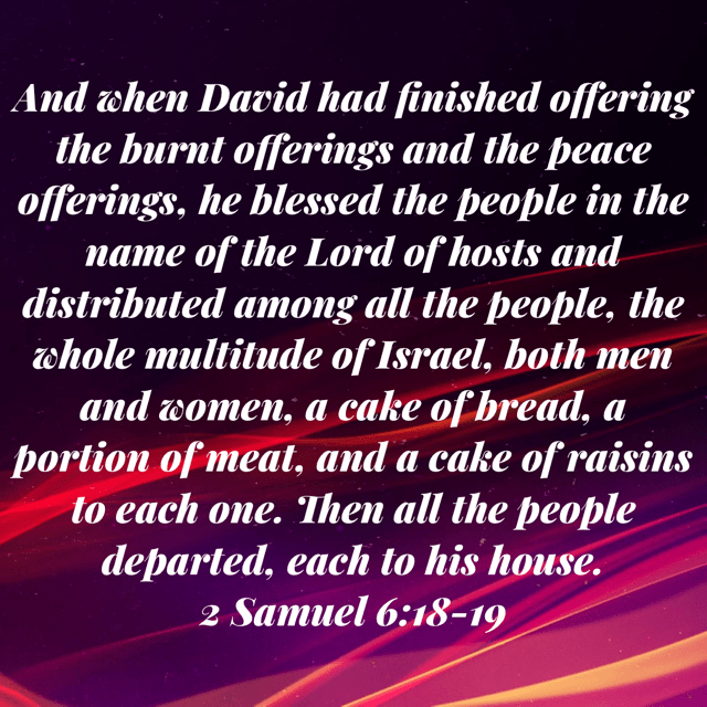Remember yesterday when we explored David’s joy at regaining the Ark of the Covenant? After dancing through the streets he gave food to everyone present.