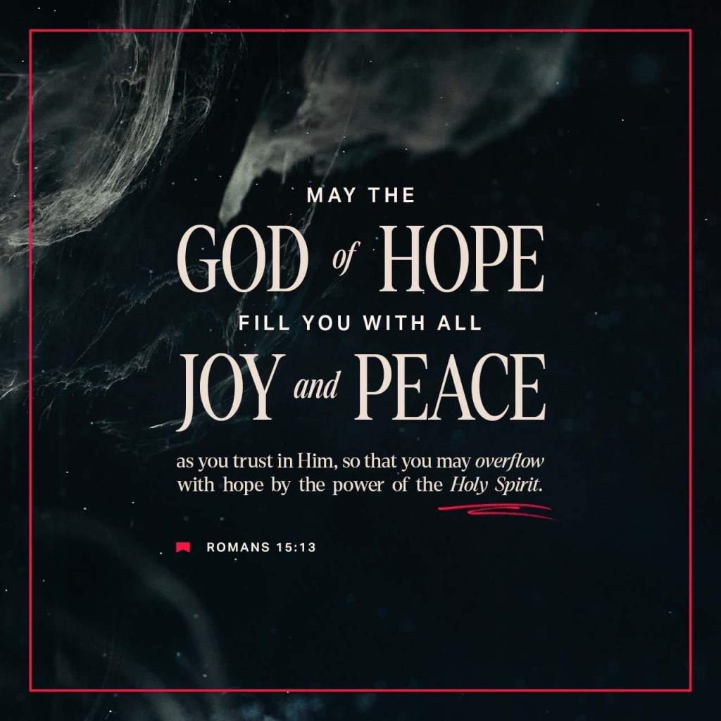 Hope is everywhere we look, but many of us are looking in the wrong place and to the wrong person for hope. For me, hope is found in the sparkling eyes of our grandchildren. They are hope for a bright and promising future. Hope is found in the rose bush that is currently dormant. It will bloom again in the spring, but right now it’s just waiting for its time. Hope is in the cardinals that hop around outside my window. They trust in their Creator to provide for them, and sometimes we help out by putting out bird seed for them. Hope…it’s in the trusting and waiting that hope is really found.