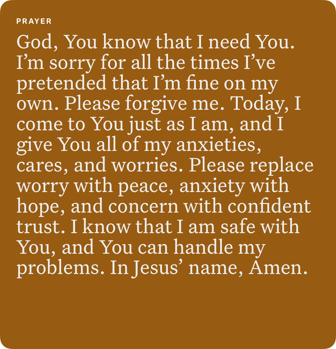 “Please replace worry with peace, anxiety with hope and concern with confident trust.” May we all press into God as He will also draw closer to us. May He be as close as our next prayer and shape us into the confident, worry-free and hopeful children He created us to be. ~Amen.