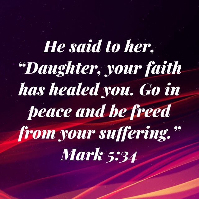 Jesus didn’t tell the woman to quit bothering Him. Instead, he told her to “Go in peace…” And so I begin my day. My foot still hurts, as well as other parts of my body that are trying to compensate, but my heart and head are filled with peace. Last night, I dreamed that I was walking without my walker and I was pain free. I hope the dream becomes a reality, but if it doesn’t I plan to be at peace with God, knowing that His plan will work everything out in the end.
