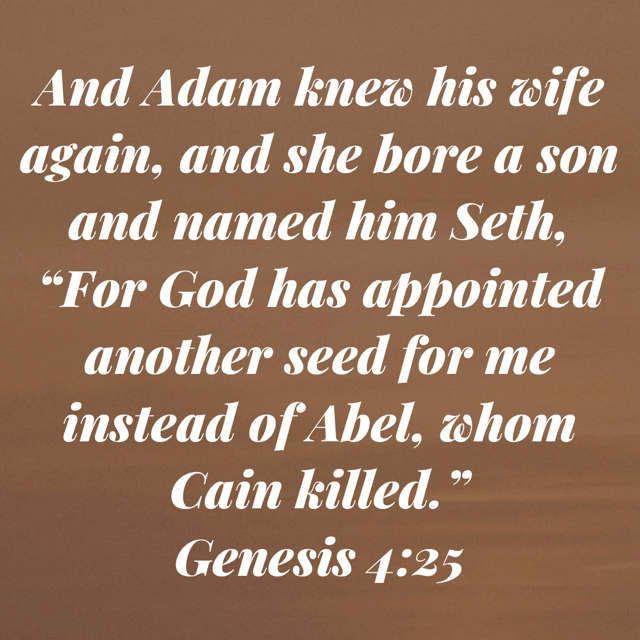 I noted in this verse that Adam knows that God is the author of life and gives God credit for giving him a new son named Seth. The relationship between Adam and God was not changed by the murder of Abel. He didn’t seem to grow bitter and turn away. Rather, he turned towards God and knew that God had given him another son.