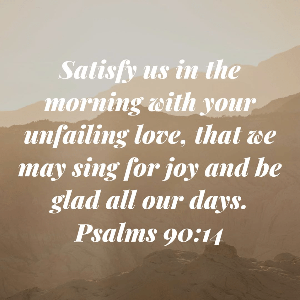 “Lord, you have been our dwelling place throughout all generations. Before the mountains were born or you brought forth the whole world, from everlasting to everlasting you are God. You turn people back to dust, saying, “Return to dust, you mortals.” A thousand years in your sight are like a day that has just gone by, or like a watch in the night. Yet you sweep people away in the sleep of death— they are like the new grass of the morning: In the morning it springs up new, but by evening it is dry and withered. We are consumed by your anger and terrified by your indignation. You have set our iniquities before you, our secret sins in the light of your presence. All our days pass away under your wrath; we finish our years with a moan. Our days may come to seventy years, or eighty, if our strength endures; yet the best of them are but trouble and sorrow, for they quickly pass, and we fly away. If only we knew the power of your anger! Your wrath is as great as the fear that is your due. Teach us to number our days, that we may gain a heart of wisdom. Satisfy us in the morning with your unfailing love, that we may sing for joy and be glad all our days. Make us glad for as many days as you have afflicted us, for as many years as we have seen trouble. May your deeds be shown to your servants, your splendor to their children. May the favor of the Lord our God rest on us; establish the work of our hands for us— yes, establish the work of our hands.”