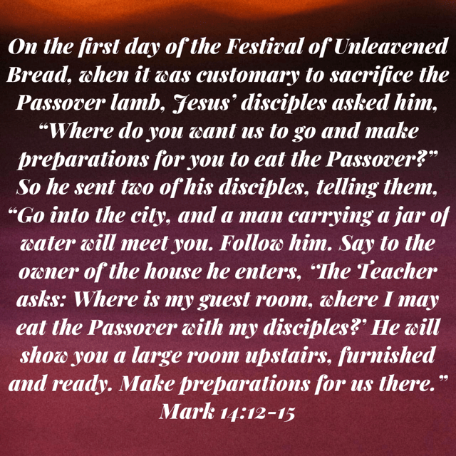 Jesus sent His disciples to get ready for Passover and everything was just as He said it would be. A local homeowner in Jerusalem had an upper room that Jesus and the disciples used for the Lord’s Last Supper. All was ready for them.