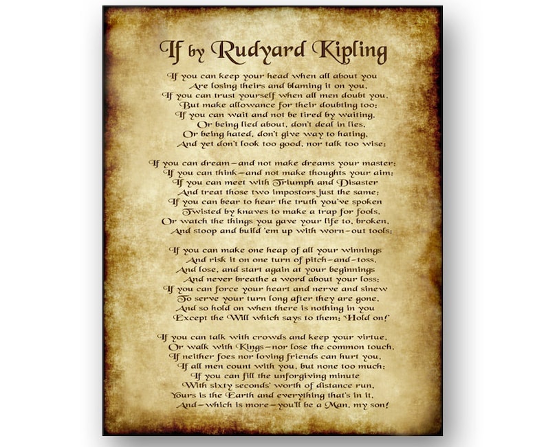 This poem does not mention God at all or what should be His place in the lives of the young person seeking to make his/her way in the world. I do not know about Kipling’s faith or lack thereof and it is not for me to judge Him. I’m simply stating that faith is not part of the poem, so perhaps a better choice for me to give as a verse or a gift would be a Scripture verse or two that would lead them to look to where their true help lies when times get tough.