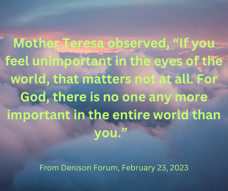 Mother Theresa was a giver, deep in her heart and soul and for all of her life. So what if you don’t feel lauded by the world, appreciated and praised? That is not our purpose here on earth. God made each of us for a reason and He knows how important we are, so that is what really counts.